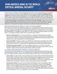 America wins when we invest and compete strategically to secure the critical minerals essential for our national and economic security. At the first-ever U.S. Critical Minerals Summit this February, Secretary of State Marco Rubio highlighted the importance of mineral supply chains for our “technological innovation, economic strength, and also national security.” Today, minerals-based industries contribute more than $4 trillion to the U.S. economy, yet China controls 60% of the global refining capability and supplies about 90% of the world’s processed rare earth elements.